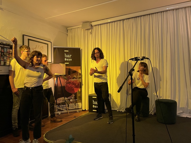 The Pennyless Players Improv group had a blast performing at Bar 8020 on Saturday Oct 22nd! We found out how Lucifer himself got overpowered by two little girls, or about Thermomix Beep-Boop’s scheme to overthrow humankind. The audience was on their toes! Then we recycled parts of old Pennyless Players performance scripts and created crazy new scenes on the top of the Empire State building, or dancing on a rainbow. What a night! A big THANK YOU to our wonderful audience who cheered us on to no end – hoping to see y’all again soon!